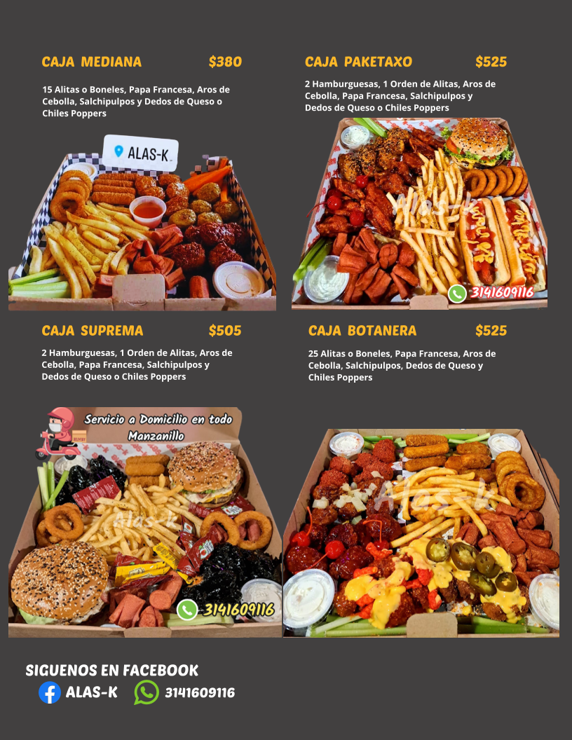 Alas-K es un restaurante destacado ubicado en C. Mariano Azuela, Nuevo Salahua, Manzanillo, Colima, que ofrece una experiencia culinaria memorable con una calificación de 4.5 estrellas basada en 185 reseñas. Reconocido por su ambiente agradable y comida deliciosa, este establecimiento es ideal para quienes buscan sabores auténticos y generosas porciones. Los clientes destacan la calidad de sus platillos, especialmente las alitas Habanero Parmesan y Macha Parmesan, que satisfacen a los amantes de la comida picante. Aunque el servicio es generalmente excelente, algunos visitantes han sugerido mejoras en la atención al cliente, señalando que el personal suele estar concentrado en la cocina. Alas-K combina una atmósfera acogedora con una propuesta gastronómica atractiva, convirtiéndose en un punto de interés para locales y turistas en Manzanillo. Para más información o reservas, puede contactarse al teléfono 314 160 9116 o visitar su sitio web oficial.