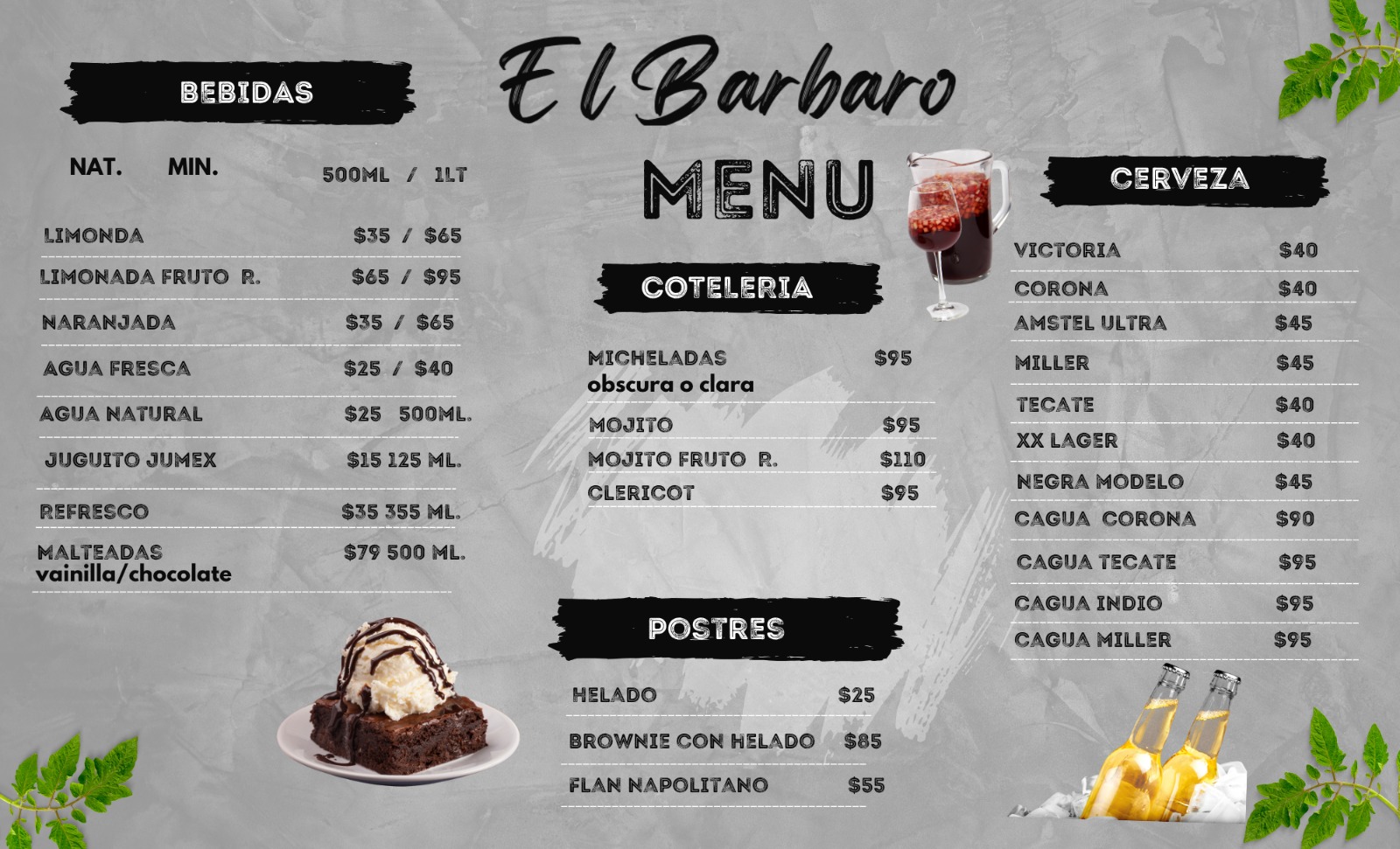 El Bárbaro hamburguesas & beer, ubicado en Av. Pablo Silva García, C. Puebla 176, Villas Providencia, en la ciudad de Villa de Álvarez, Colima, es un restaurante que ofrece una experiencia gastronómica especializada en hamburguesas y cerveza artesanal. Con una calificación de 4.5 sobre 5 en Google basada en 11 opiniones, el establecimiento destaca por la calidad de sus platillos y un excelente servicio. Aunque algunos clientes mencionan que los precios son elevados en comparación con otros lugares, la calidad y el sabor de sus hamburguesas justifican la inversión para quienes buscan una experiencia culinaria diferente. Además, El Bárbaro es conocido por sus eventos temáticos, especialmente los sábados de rock, que le dan un ambiente único y atractivo para quienes disfrutan de la música en vivo. El lugar se mantiene limpio y bien cuidado, ofreciendo un ambiente agradable para compartir en familia o con amigos. Para más información o reservaciones, puede contactarse al teléfono 312 195 8120 o visitar su página web https://directoriocolima.com.