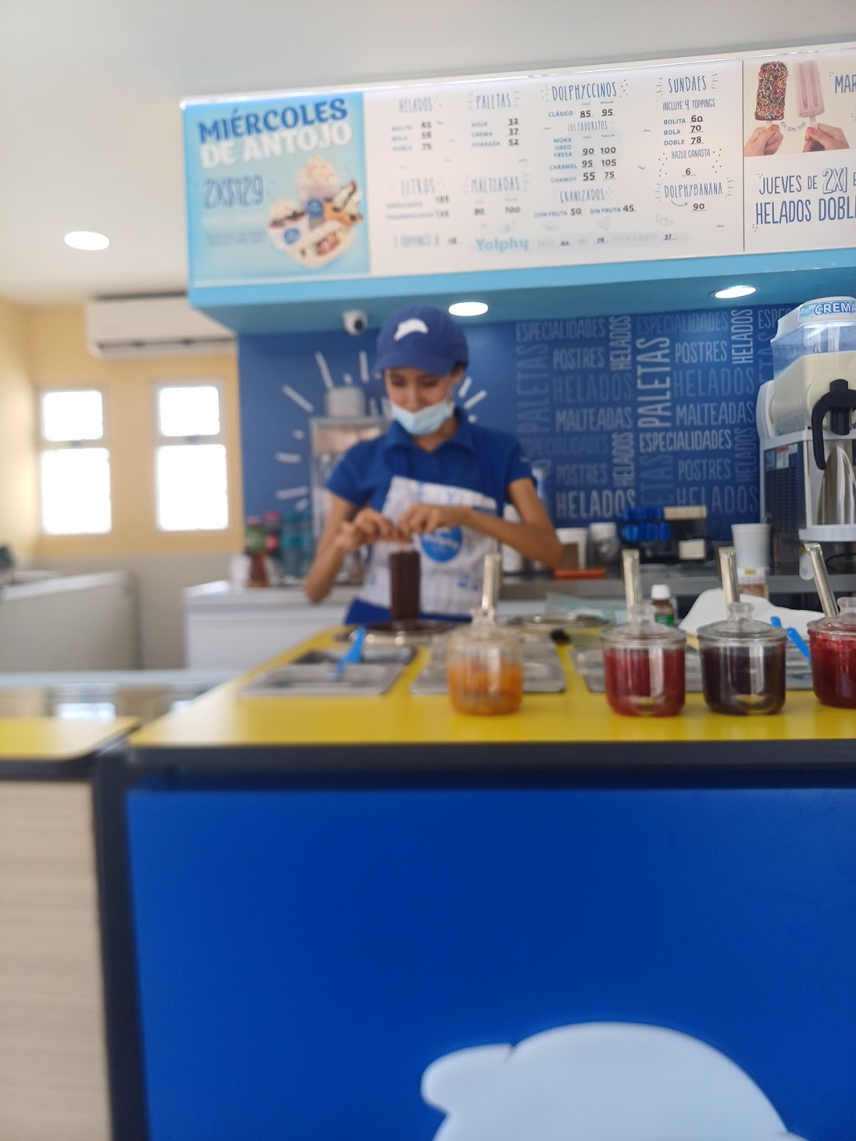 Helados Dolphy Paseo Gaviotas es una opción destacada para los amantes del helado en Manzanillo, ubicado en Av Paseo de Las Gaviotas 77, Soleares, Garzas Gaviotas. Este establecimiento ofrece una variedad de sabores, incluyendo opciones sin azúcar, ideales para quienes buscan alternativas más saludables sin sacrificar el sabor. Aunque el local es pequeño y principalmente orientado al servicio para llevar, la atención al cliente es generalmente buena, permitiendo disfrutar de un dulce momento en un ambiente sencillo. Algunos visitantes han señalado que el lugar puede pasar desapercibido al conducir, por lo que se recomienda estar atento a la dirección. La calificación en Google es de 3.8 estrellas, basada en cinco opiniones, reflejando una experiencia variada entre los clientes. Helados Dolphy es una parada conveniente para quienes buscan un postre refrescante en la zona de Garzas Gaviotas y sus alrededores, con fácil acceso y un ambiente informal.