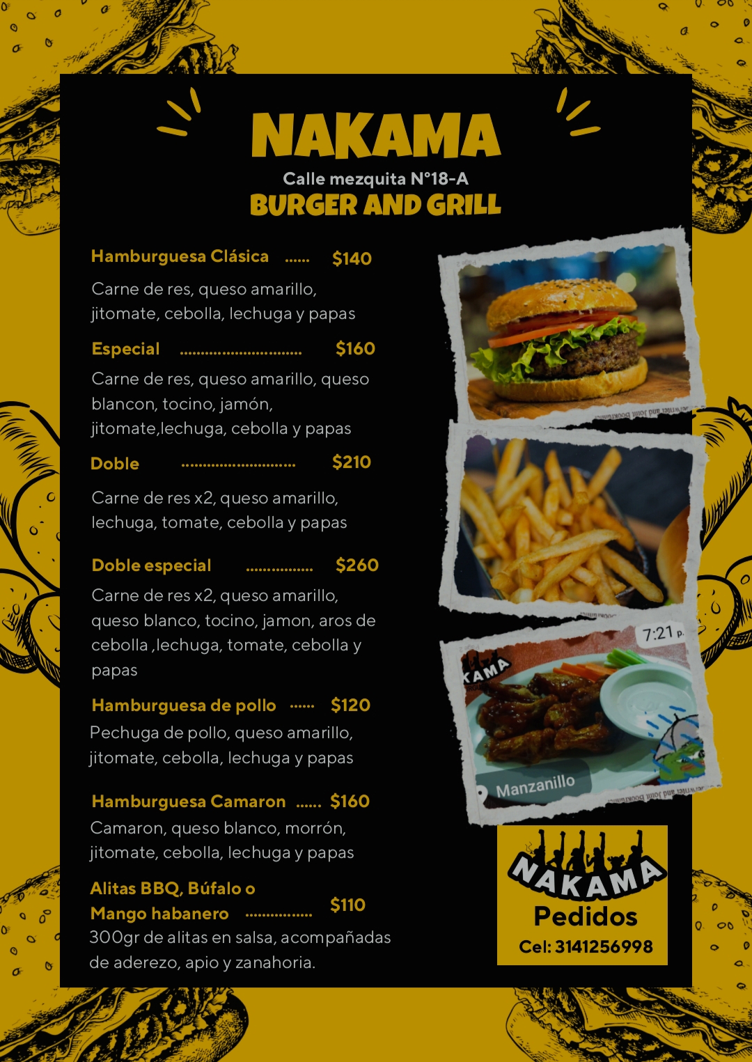 NAKAMA Burger es un restaurante destacado en Manzanillo, ubicado en Barrio 5, calle 8 61, Gaviotas, Salagua. Con una calificación perfecta de 5 estrellas basada en once reseñas, este establecimiento se ha ganado la preferencia de sus clientes gracias a su excelente servicio y su delicioso menú. Su especialidad incluye platillos como nachos con arrachera y alitas frescas, adaptándose también a necesidades dietéticas específicas, lo que demuestra su compromiso con la satisfacción y bienestar de sus comensales. El ambiente temático inspirado en One Piece ofrece una experiencia única para los visitantes, combinando gastronomía y cultura pop. Su página de Facebook proporciona información actualizada y contacto directo para reservas o consultas. NAKAMA Burger es una parada obligatoria para quienes buscan calidad, sabor y un ambiente acogedor en Manzanillo.