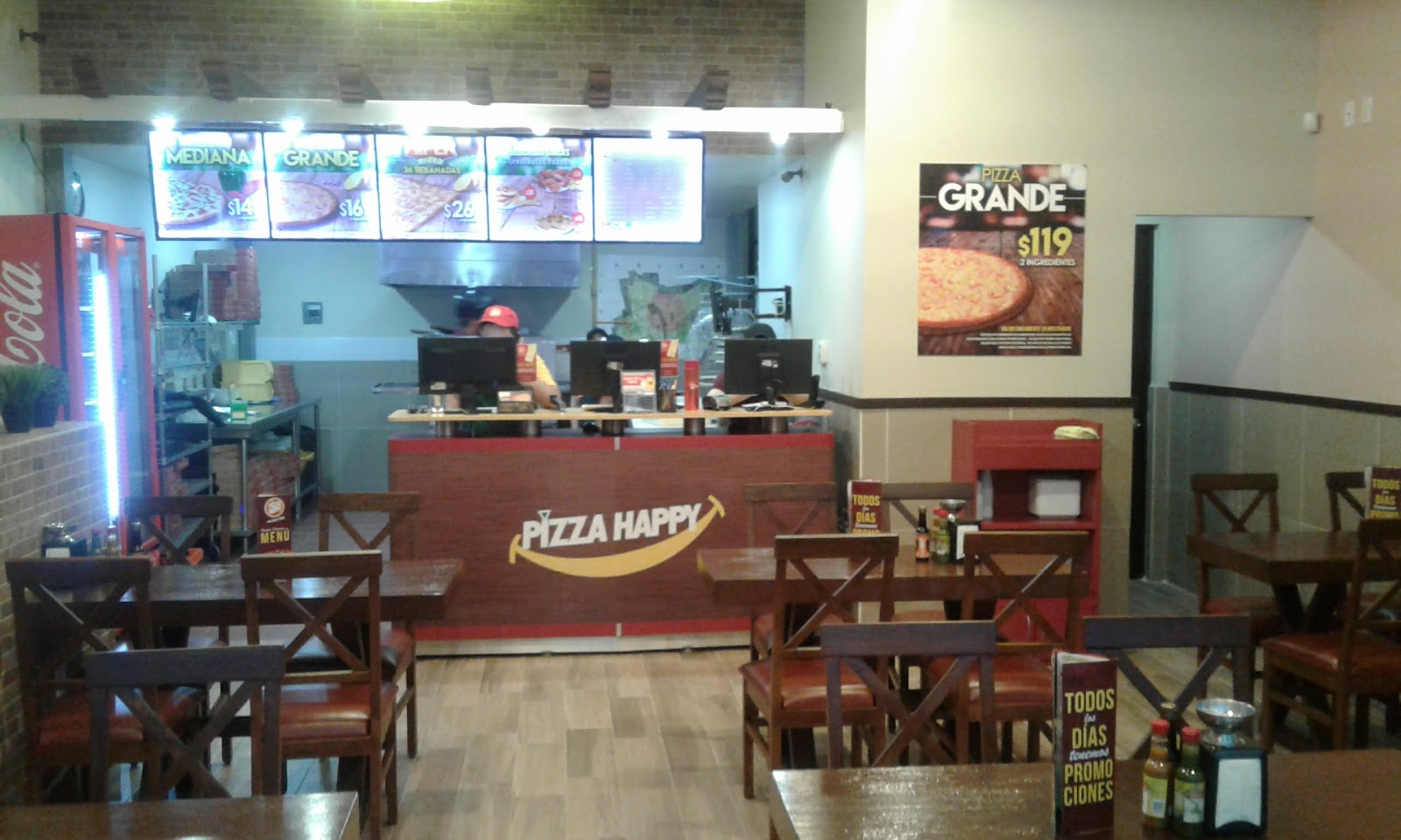 Pizza Happy is a pizzeria located at Plaza Rey, Av. 20 de Noviembre 504-local 3, Centro, Colima. With a 4.3 out of 5 rating from 115 reviews, this restaurant is known for its fast service and family-friendly environment, featuring a children’s play area. Pizza Happy offers dine-in, delivery, and takeaway options, catering to the convenience of its customers. It is also a popular venue for hosting children’s parties, which require advance booking and selection of one of the available packages. While some customers have noted that prices can be somewhat high relative to portion sizes and have reported occasional negative interactions with staff, Pizza Happy remains a notable choice for casual dining in Colima. For more information or to place an order, customers can call 312 312 0000 or visit their official website at www.pizzahappy.com.