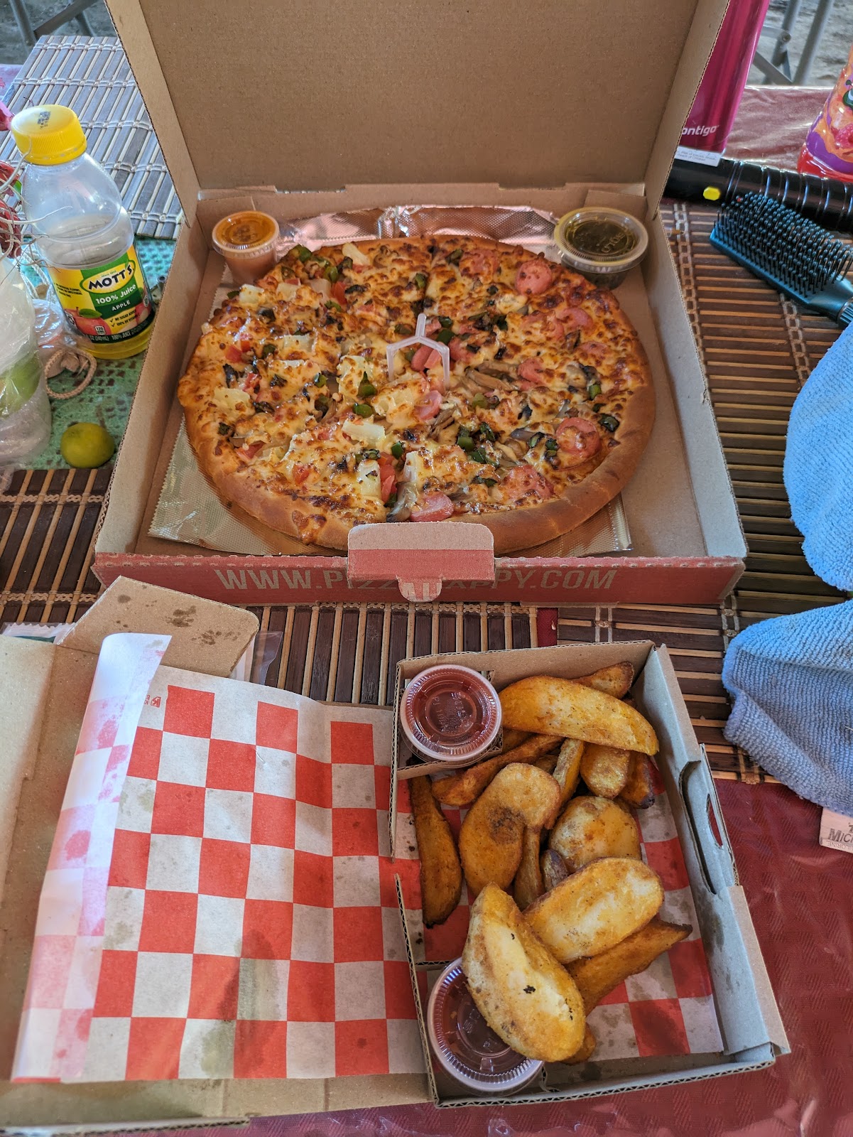 Pizza Happy is a pizzeria located at Av. López Mateos 158, Centro, Tecomán, Colima. With a Google rating of 4.1 out of 5 from 386 reviews, this restaurant is recognized for its variety of pizzas, including classic and specialty flavors such as Italian sausage with bell peppers. Besides pizza, they offer sides like fries that complement the meals well. Customers appreciate the delivery service for being fast and reliable. The venue features a kids’ playground and background music, making it a family-friendly spot. Some reviews mention that the pizza size has decreased compared to previous visits and note occasional unfriendly behavior from staff, but most patrons value the freshness and taste of the food. Pizza Happy also provides takeaway services, allowing customers to enjoy their meals at home. For more details or to place an order, call 313 324 4444 or visit their website at http://www.pizzahappy.com/.