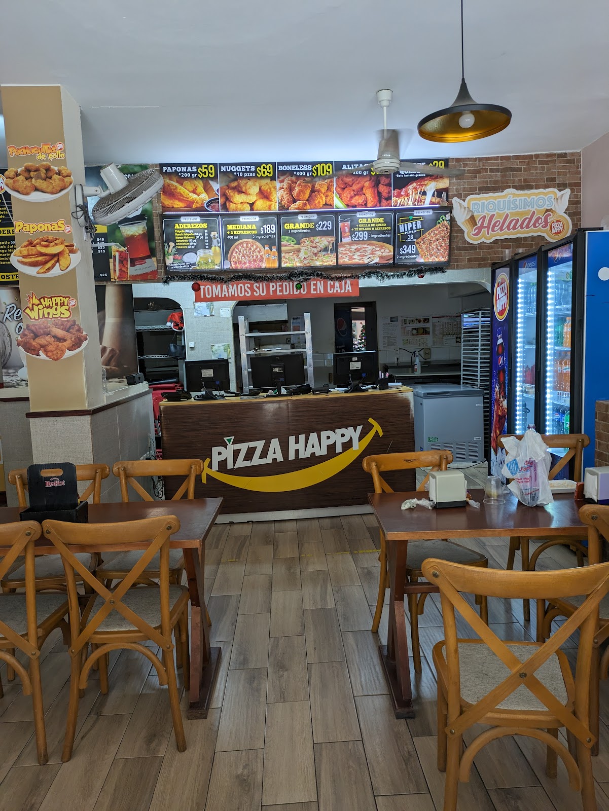 Pizza Happy es una pizzería ubicada en Av. López Mateos 158, Centro, Tecomán, Colima. Con una calificación de 4.1 sobre 5 basada en 386 opiniones, este restaurante es conocido por su variedad de pizzas que incluyen opciones clásicas y sabores especiales como la italiana con salchicha y pimientos. Además de la pizza, ofrecen papas y otros acompañamientos que complementan bien la comida. Los clientes destacan la calidad del servicio de entrega, señalando que es rápido y eficiente. El local cuenta con un área de juegos para niños y música ambiental, lo que lo hace un lugar agradable para familias. Aunque algunos clientes han mencionado que el tamaño de la pizza es menor que en ocasiones anteriores y han notado actitudes poco amables en el personal, la mayoría valora la frescura y el sabor de los platillos. Pizza Happy también ofrece servicio para llevar, facilitando que los comensales puedan disfrutar de sus productos en casa. Para más información o hacer un pedido, se puede contactar al teléfono 313 324 4444 o visitar su sitio web http://www.pizzahappy.com/.