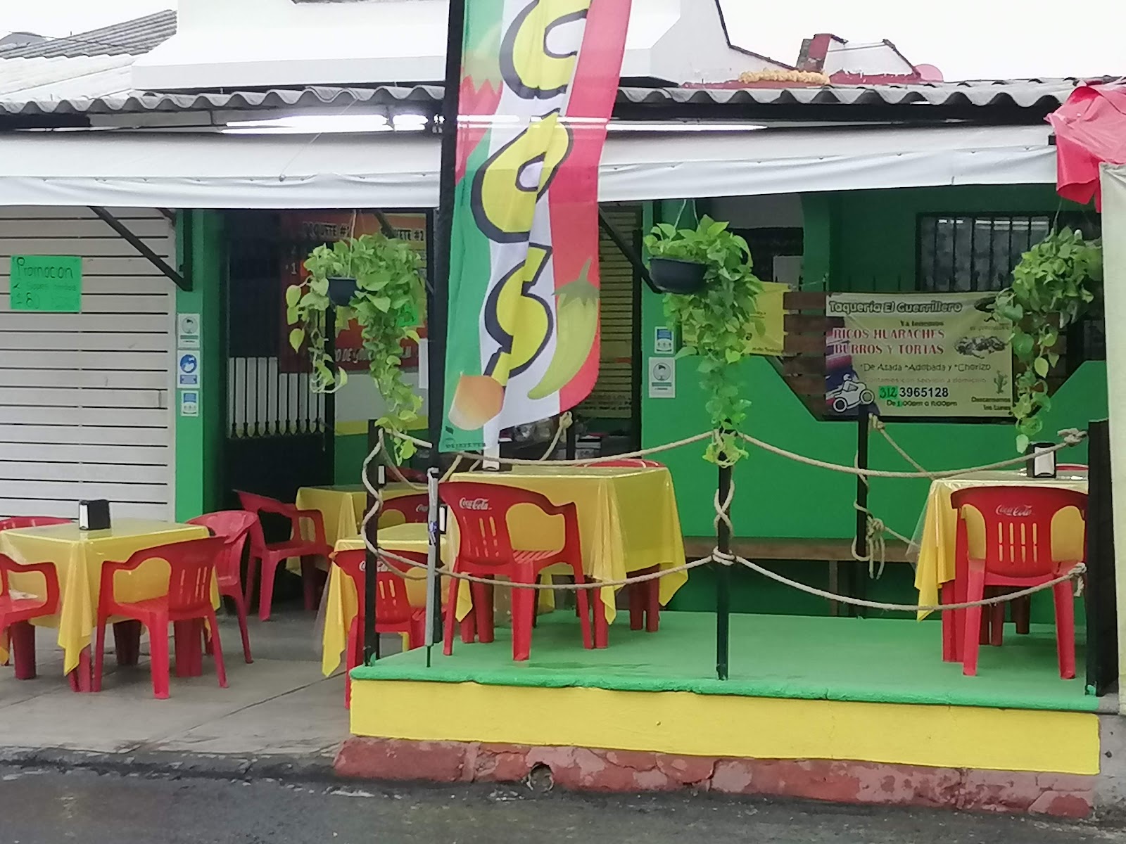 Taquería El Guerrillero, ubicada en Av Pablo Silva García 298, Villa de Oro, en la Ciudad de Villa de Álvarez, Colima, es un referente local para los amantes de la comida tradicional mexicana. Con una calificación de 4.6 sobre 5 en Google basada en 48 reseñas, este restaurante destaca por sus tacos preparados con sazón auténtico originario de Tecomán. Sus tacos de doble tortilla y carne asada con queso fundido son especialmente reconocidos por su calidad y sabor, convirtiéndolos en una opción preferida entre los visitantes. Además, el establecimiento ofrece paquetes especiales para grupos, facilitando una experiencia gastronómica compartida y accesible. El servicio es considerado aceptable, complementando la oferta culinaria que hace de esta taquería un punto de interés imprescindible para quienes buscan disfrutar de una comida tradicional con un toque casero en la región. Para más información o para contactarlos, puede llamar al 312 396 5128 o visitar su página oficial en Facebook.
